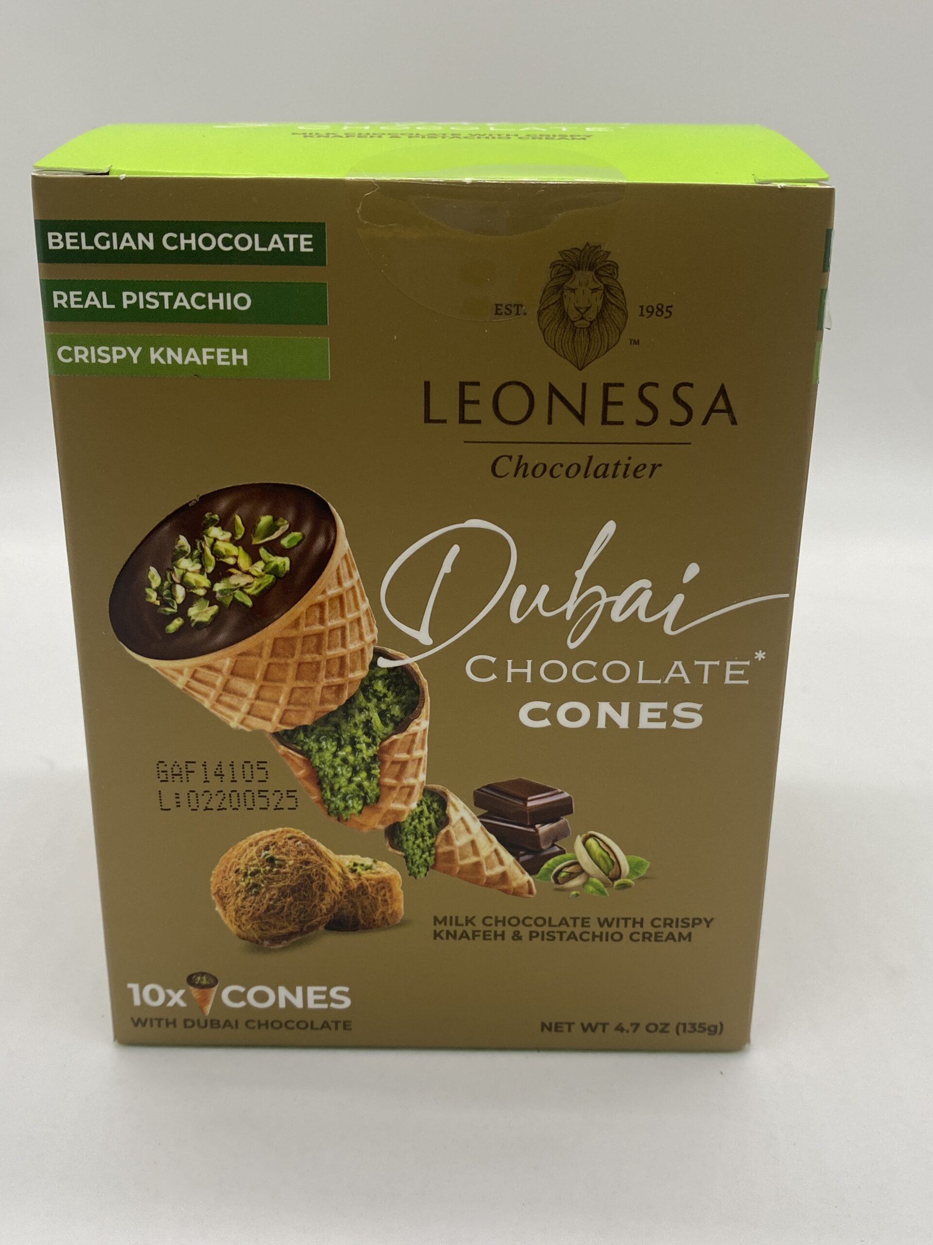 LEONESSA DUBAI CHOCOLATE CONE 135G 12/10CT BOX